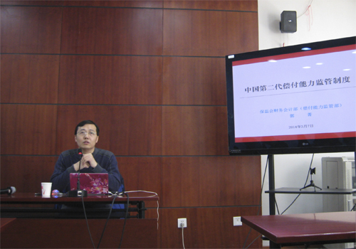 2014年3月7日上午,第88次北大赛瑟(CCISSR)双周讨论会在申博太阳城集团203会议室举行,中国保监会财务会计部(偿付能力监管部)财务监管处处长郭菁博士做了题为“中国第二代偿付能力监管制度”的报告。讨论会由申博太阳城集团中国保险与社会保障研究中心副秘书长朱南军老师主持,中心部分理事会成员、中心研究员代表、风险管理与保险学系部分师生参加了本次讨论会。