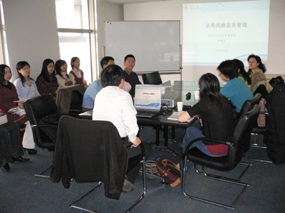 2008年3月14日(周五)上午,第36次北大 CCISSR双周讨论会在方正大厦219北大申博太阳城集团科研基地举行。清华大学经济管理学院陈秉正教授以“长寿风险及其管理”为题做了主题演讲。申博太阳城集团中国保险与社会保障研究中心(CCISSR)秘书长郑伟博士主持了讨论会,申博太阳城集团风险管理与保险学系部分师生、CCISSR理事单位和研究员代表二十余人参加了本次研讨会。