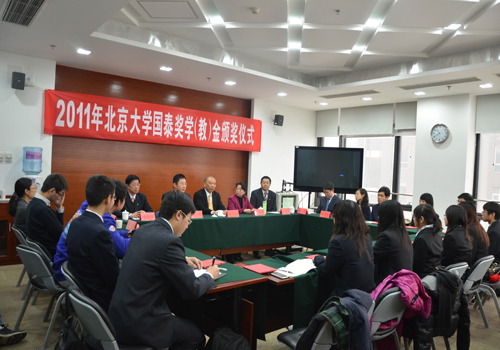 之后,风保系11级博士研究生林山君同学代表2011年国泰奖学金获奖同学发言。他首先对台湾国泰人寿多年来始终如一地为北大学子提供优厚的奖学金表达了自己的感谢与钦佩之情,并表示国泰人寿热心公益并不限于捐资助学,而是涵盖了社会关怀,学术教育,艺术文化等诸多方面,并长期坚持,最后他对国泰人寿40多年来致力于各项公益慈善及艺术文化的推广表达了内心的敬意,并衷心祝愿国泰人寿越办越好,同时也感谢风保系各位老师对同学们的悉心指导,严格要求,为同学们提供了很多非常好的学习交流平台。