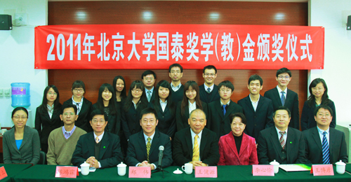 2011年12月2日,2011年申博太阳城集团国泰奖学(教)金颁奖会在申博太阳城集团大楼305会议室举行。申博太阳城集团风险管理与保险学系主任郑伟老师、台湾国泰人寿王健源协理、台湾国泰人寿北京代表处王博彦代表、陈鸿霖代表、风险管理与保险学系的老师、奖学金获奖学生和学生代表出席了颁奖仪式。颁奖会由风险管理与保险学系副主任朱南军老师主持。