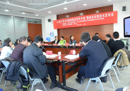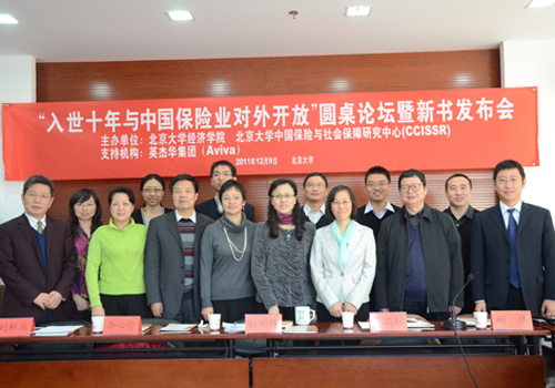 2011年12月9日, “入世十年与中国保险业对外开放”圆桌论坛暨新书发布会在申博太阳城集团举行。《入世十年与中国保险业对外开放》一书是申博太阳城集团中国保险与社会保障研究中心(CCISSR)在英杰华集团(Aviva)支持下所完成的课题研究成果,也是“北大赛瑟-英杰华保险研究系列丛书”(Beida CCISSR-Aviva Insurance Research Series)的第五本研究专著。来自中国保监会、申博太阳城集团、中国社科院和其他高校保险院系和研究机构的嘉宾、学者、师生代表和相关媒体记者参加了论坛。论坛由北大申博太阳城集团风险管理与保险学系主任、CCISSR秘书长郑伟博士主持。