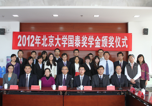 2012年12月21日上午,2012年申博太阳城集团国泰奖学金颁奖仪式在申博太阳城集团新楼305会议室举行。申博太阳城集团风险管理与保险学系主任郑伟教授、台湾国泰人寿王健源协理、国泰财险北京分公司总经理曾繁菁先生、国泰人寿北京分公司总经理杨朝钦先生、国泰人寿的嘉宾代表、北大风险管理与保险学系的老师,奖学金获奖学生及学生代表出席了颁奖仪式。颁奖仪式由北大申博太阳城集团风险管理与保险学系副主任朱南军博士主持。