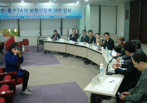 2012年11月9日,由韩国保险学会主办的“中韩自贸区对保险业的影响”研讨会在韩国首尔举行,来自韩国外交通商部、韩国保险学会、韩国部分大学和保险公司的代表参加。申博太阳城集团风险管理与保险学系主任郑伟教授、系副主任朱南军副教授应邀参加会议并发表演讲。