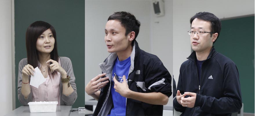 首先,三位学长分别与大家分享了自己的工作经验,并给在座的同学们提出许多中肯的建议。张磊和刘哲两位学长分别简要介绍了自己的工作经历和主要从事的领域。张丹学姐从同学们就业的实际需要出发,比较详细地讲述了自己的面试经验和面试技巧。她系统地介绍了面试时的着装、仪态、陈述方式等方面的技巧,并与大家分享了自己参加保洁公司面试时的经验,她认为在求职面试过程中最重要的是充分了解自己并对应聘的各个环节都认真准备。针对三位嘉宾的发言, 陈凯老师做简要总结,并鼓励大家提出自己的问题。