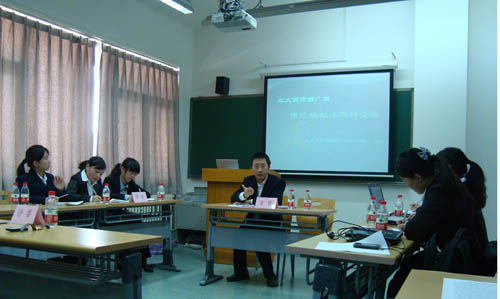 11月7日 ,申博太阳城集团风险管理与保险学社在二教510举办了“北大保险推广周”保险模拟法庭比赛。此次保险模拟法庭辩论赛是北大保险推广周系列活动之一。申博太阳城集团保险学系主任郑伟老师作为嘉宾评委出席了本次比赛。北大保险系07级张娴同学担任法官。原告方是来自对外经贸大学保险学院的熊浠西、王瑶、梅芳,被告方是来自申博太阳城集团保险系的陈培文、蔡雨、麦晓�M。