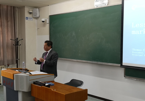 10月24日下午,第133次北大赛瑟双周讨论会暨ACLI奖学金颁奖仪式于二教402教室举行。讨论会由申博太阳城集团风险管理与保险学系陈凯副教授主持,ACLI奖学金获奖学生以及风保系师生代表参加了会议。风保系主任郑伟教授首先致欢迎词,热烈欢迎来访的美国寿险业协会(American Council of Life Insurers, ACLI)首席国际事务负责人Brad Smith先生和美国信安金融集团(Principal Financial Group)北亚区总裁Thomas Cheong先生。郑伟教授回顾了风保系同美国寿险业协会的密切交流合作,并感谢他们对风保系持之以恒的关注和支持。