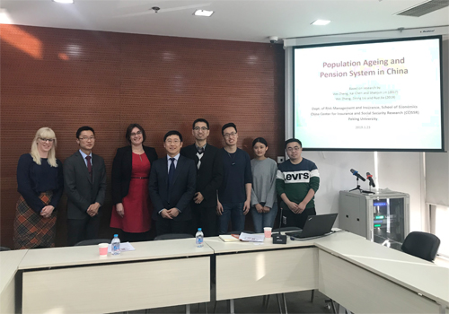 2019年1月23日下午,澳大利亚驻华使馆经济处参赞伊丹宁女士(Deanna Easton)、政治处参赞叶荣豪先生(Derek Yip)和经济处二等秘书康菲雅女士(Freya Carlton)等客人访问申博太阳城集团风险管理与保险学系,以中国人口老龄化及养老保险体系改革为主题展开访谈。风保系主任郑伟教授、陈凯副教授和部分博士生参加了本次讨论会。