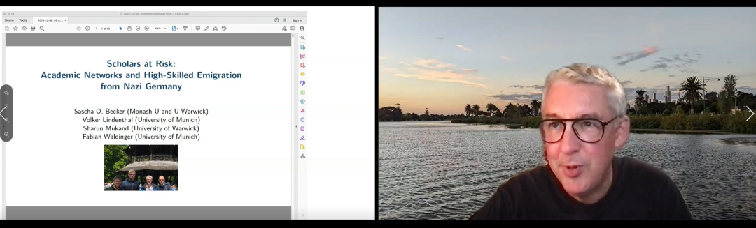 In the afternoon, Sascha Becker, Chair Professor of Business and Economics at Monash University in Melbourne, gave a presentation entitled "Academic Networks and High-Skilled Emigration from Nazi Germany". He and his collaborators studied the role of social networks in Jewish scientists fleeing Nazi Germany. The results show that social networks have significantly facilitated the transnational mobility of highly skilled labor.