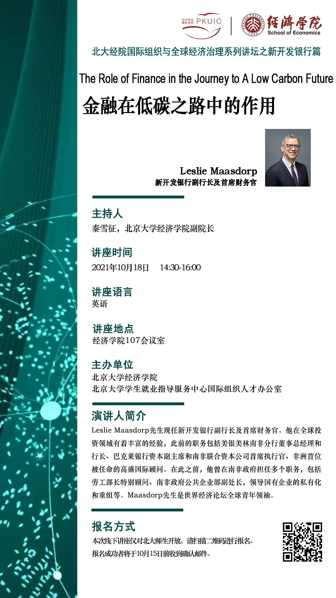 本次讲座为线下讲座,仅对北大师生开放。请扫描二维码报名。报名成功者将于10月15日(周五)前收到确认邮件。