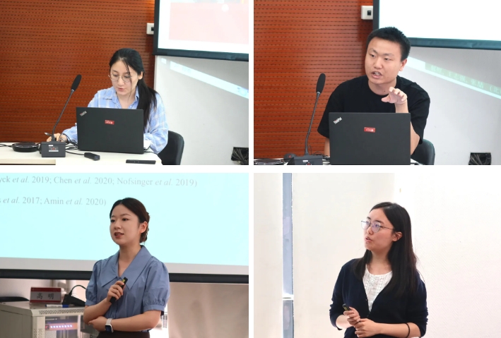 2021级博士生赵冠男以“气温变化对农村能源贫困的影响”为题作学术报告;2021级博士生王志强以“轮船航运与市场整合:来自晚清中国的证据”(合作者:郝煜、王志强、张喆)为题作学术报告;2022级博士生陈涤非以“Network Density and ESG Performance”(合作者:陈锐钒、陈涤非)为题作学术报告;2022级博士生尹靖雨以“制造业电气化的工业减碳效应与清洁能源发电在其中的调节作用”(合作者:季曦、吴国维、林杰、尹靖雨)为题作学术报告。