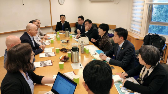 在以色列财政部,考察团与以色列财政部PPP主管部门展开交流,并就如何促进合作达成了初步共识。以色列财政部会计总司政府债务管理处处长Lior David-Pur、会计总司运输和项目处处长Einat Gamzu、以色列内政部首席财务官员、原驻华大使馆财政和经济公使Ofer Peleg参加了座谈。