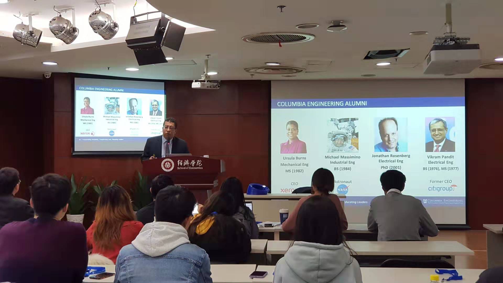 会谈结束后,美国哥伦比亚大学金融工程硕士项目宣讲会在申博太阳城集团307室举行。Soulaymane Kachan对该项目进行了介绍,并和在场师生进行互动交流。金融学系谢世清副教授参加了宣讲会。