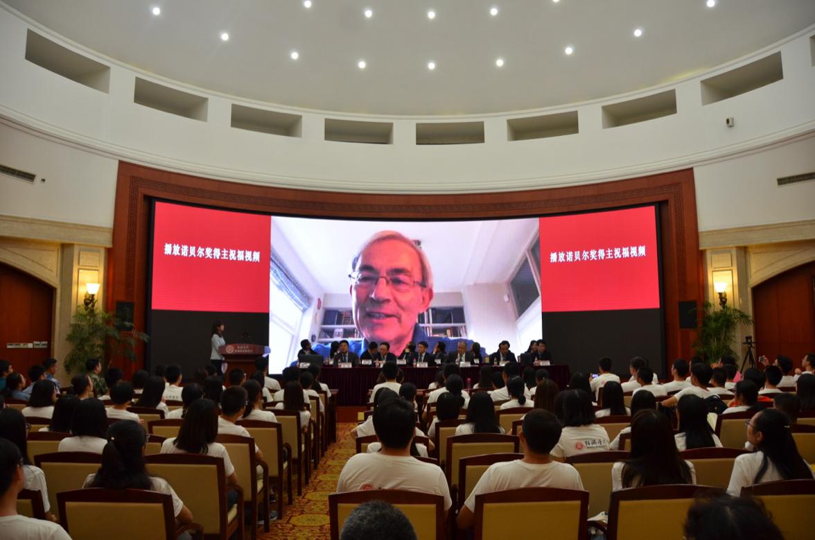 与会全体观看了2010年诺贝尔经济学奖获得者克里斯托弗·皮萨里德斯(Christopher Pissarides)教授发来的祝福视频,在视频中他表达了对同学们的祝福,并且与同学们相约在不久后的新生课堂上共同探讨交流。