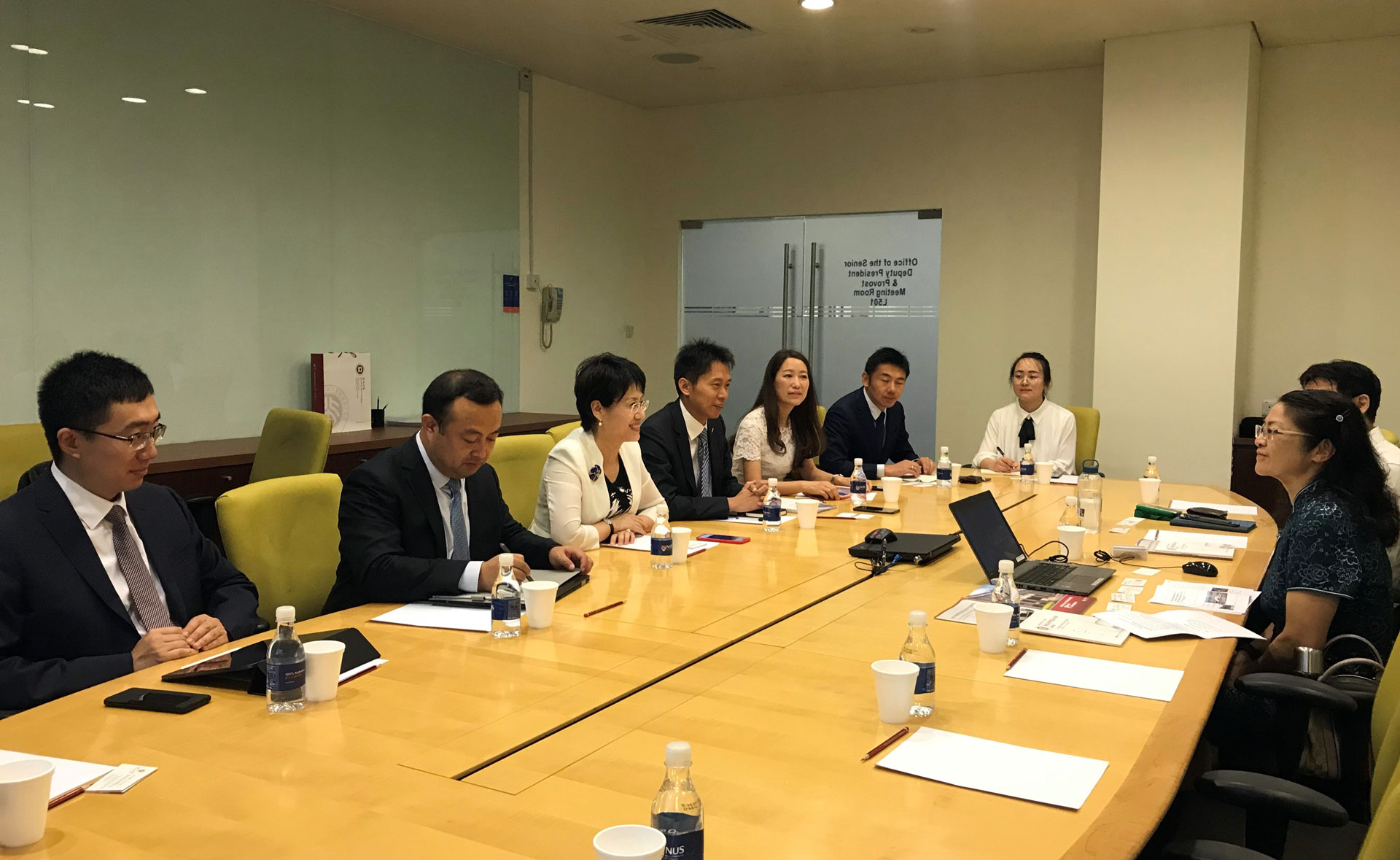 6月20日,孙祁祥教授一行到访新加坡国立大学。新加坡国立大学副校长兼副教务长Florence Yean Yng Ling 教授等接待了北大申博太阳城集团代表团。首先,Florence Yean Yng Ling 教授对新加坡国立大学的学校规模、院系设置、硬件设施、教学理念等整体情况进行了详细介绍。随后,孙祁祥教授介绍了北大申博太阳城集团的基本情况和已经开展的国际交流项目。双方就学生交换、教师互访、联合研究等方面的合作展开深入讨论,并达成了继续推进多层次交流与合作的共识。