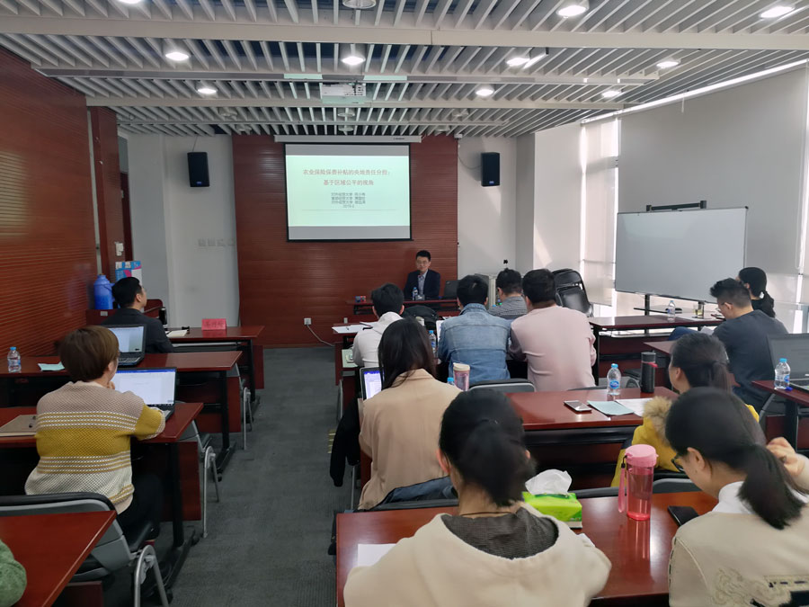 2019年3月8日上午,第136次北大赛瑟(CCISSR)双周讨论会于北大申博太阳城集团302会议室举行。对外经济贸易大学保险学院风险管理与保险学系主任何小伟副教授以“我国农业保险财政补贴的地区公平性——测度及优化”为题,就我国农业保险财政补贴地区差异性问题进行了分享。讨论会由申博太阳城集团风险管理与保险学系副主任朱南军主持。风险管理与保险学系部分师生、系友参加了本次讨论会。