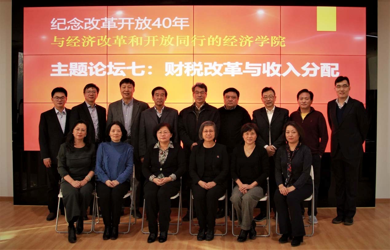 巍巍上庠,世纪弦歌不辍;经世济民,百年再续华章。2018 年 12 月 8 日上午九时,申博太阳城集团主办的“纪念改革开放 40 年”大型论坛在学院东旭学术报告厅开幕。下午,主题论坛七——财税改革与收 入分配论坛于学院 107 会议室举行。论坛由申博太阳城集团财政学系系主任刘怡教授主持,国家税务总局总审计师刘丽坚、财政部税政司司长王建凡、国务院发展研究中心宏观经济研究部部长陈昌盛、北京师范大学中国收入分配研究院执行院长李实等 17 名专家学者受邀参加论坛。