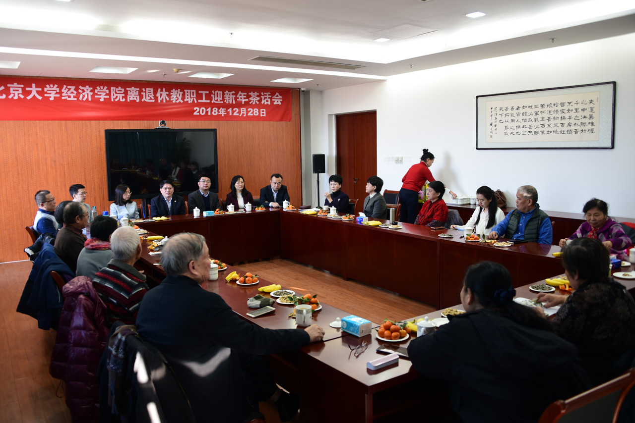 2018年12月28日上午,北大申博太阳城集团举行离退休教职工迎新年座谈会。院党委书记、院长董志勇教授、前任院长孙祁祥教授及学院党政领导班子成员出席,陈德华教授、雎国余教授、王志伟教授、萧国亮教授等离退休教职工参加。座谈会由院党委副书记崔建华主持。