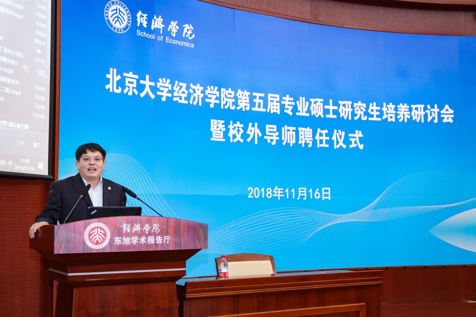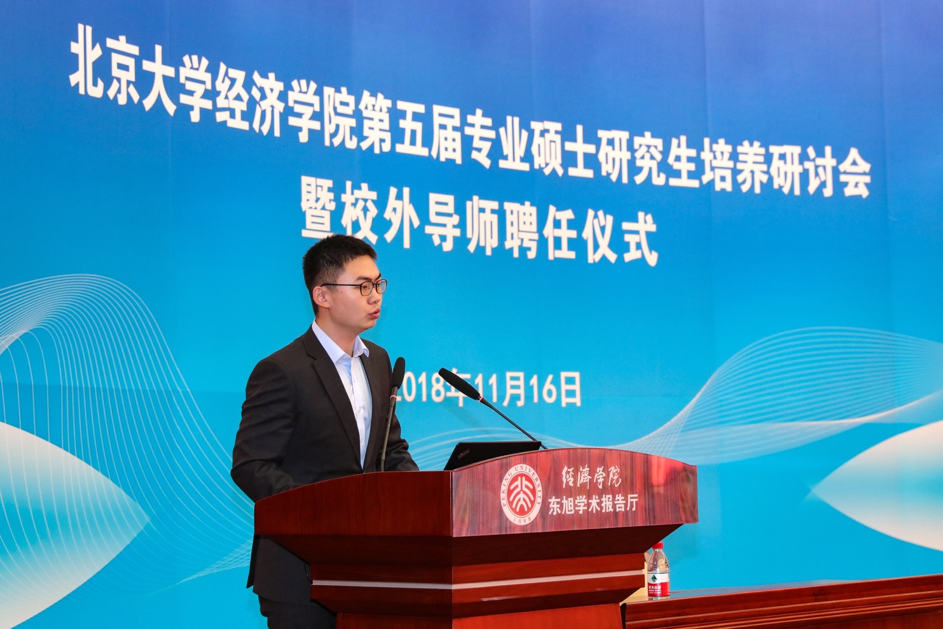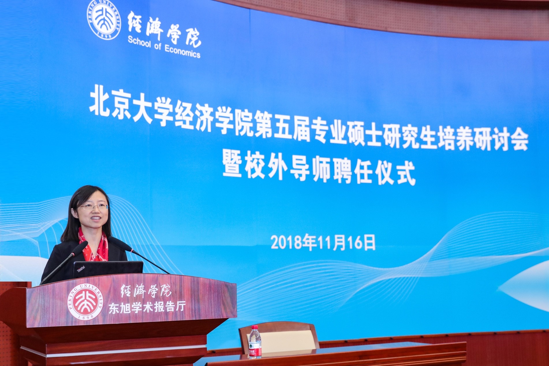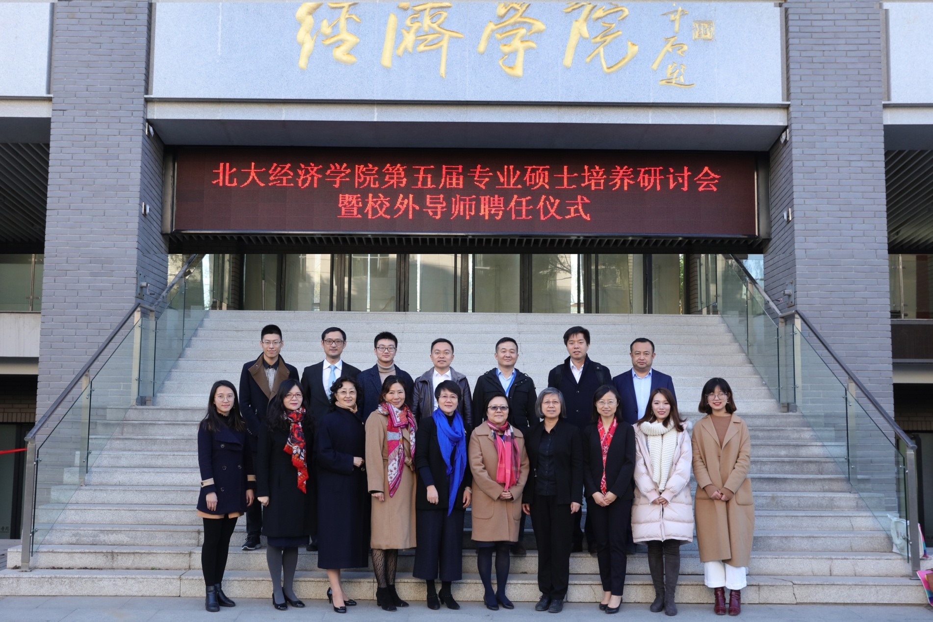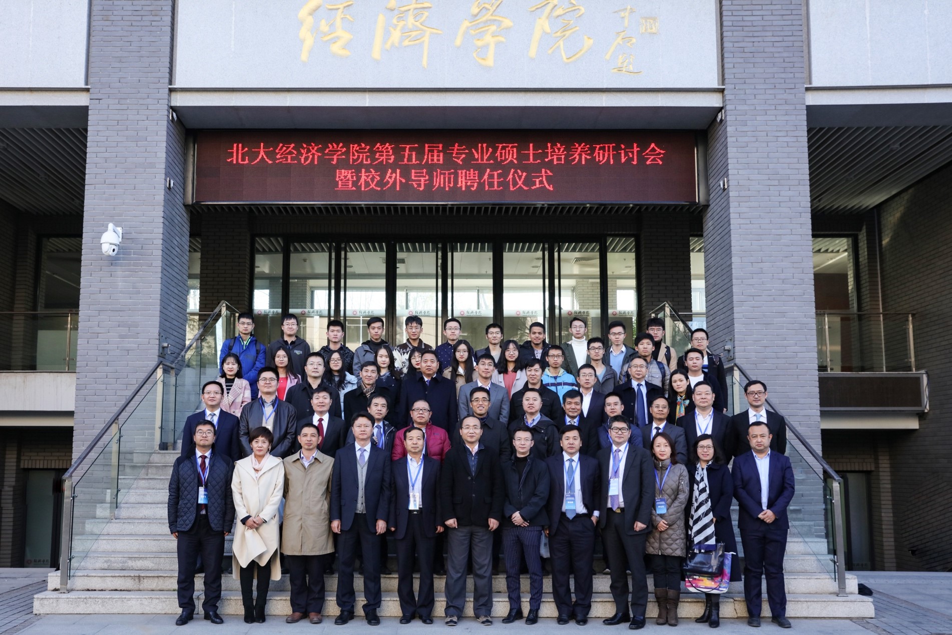 在聘任环节,董志勇和孙祁祥向优秀校外导师颁奖,锁凌燕及各系主任向新聘及续聘的专业硕士校外导师、EDP中心校外导师颁发聘书。