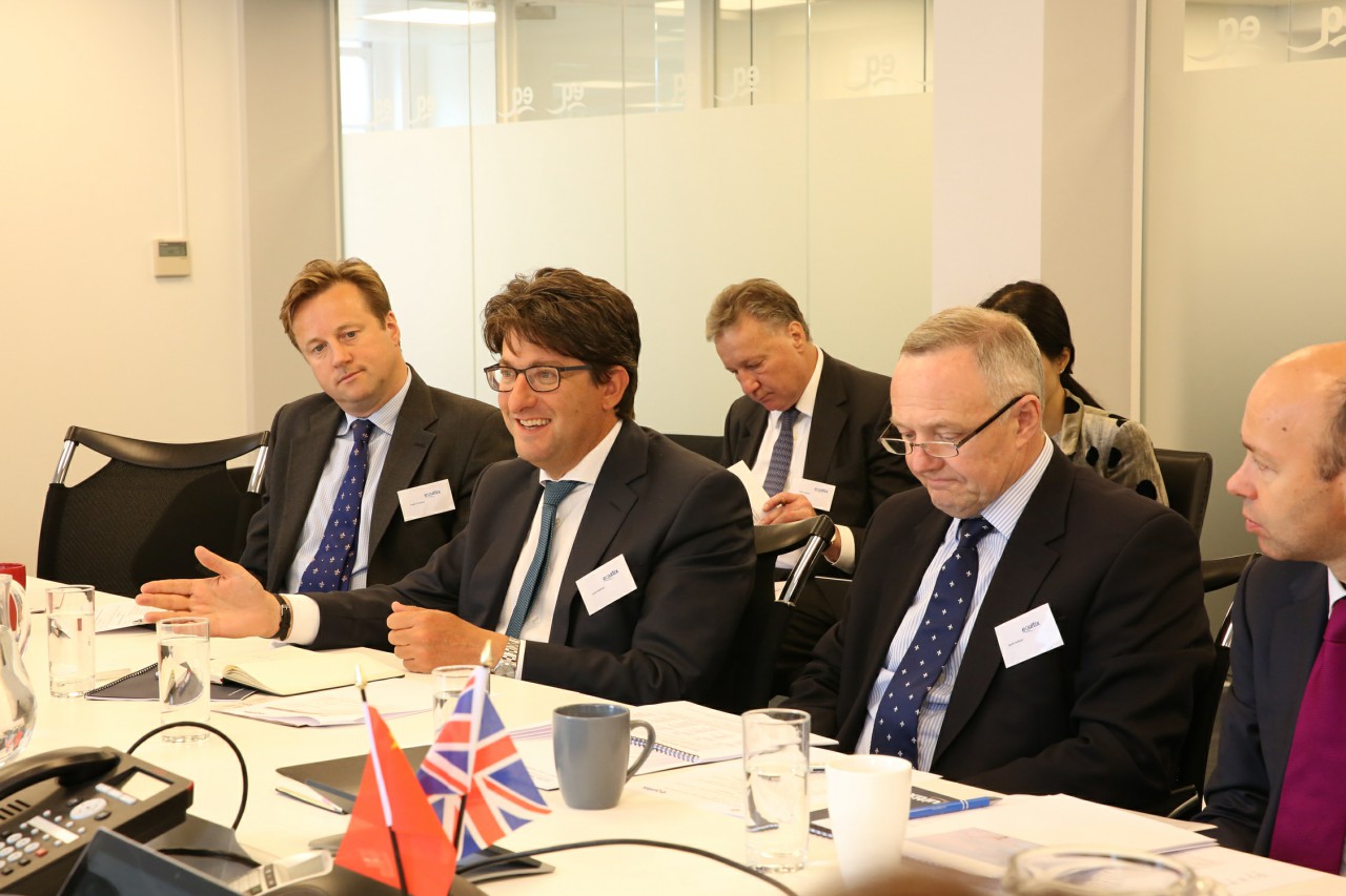 在英国最大的基础设施投资公司Equitix,前卡梅伦政府保守党主席、Tetragon(Equitix Ltd母公司)高级顾问Rt Hon Lord Feldman of Elstree为考察团介绍了英国政治版图和公共设施项目私营投资的需求,Equitix公司CEO Geoff Jackson和CIO Hugh Crossley介绍了Equitix公司的相关情况。Equitix公司开发总监David Rose和项目总监Andy Barrett介绍了英国PPP项目经验和教训。KPMG合伙人Jonathan White作了题为《英国和欧洲项目融资市场现状》的报告,美林证券美国银行董事总经理Patrick de Loe 介绍了英国水务市场投资机遇与监管环境。
