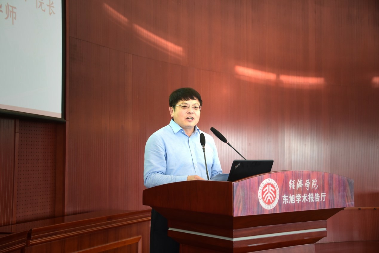 随后,董志勇院长以“自我”为主题致辞。他对来自五湖四海、相聚未名博雅的新生与家长们表达了诚挚的欢迎与热烈的祝贺,希望他们能够感受到百年经院的学术氛围、人文底蕴、育人传统以及对新生的关心重视。董志勇院长提出了自己对新生们的三点期望:一是学会自我选择,适应环境,新生们要尽快卸下荣誉的包袱,积极做好心理调整;二是努力自我丰富,努力进步,北大经院的一纸文凭远不足成为人生畅行无阻的通行证,只有终身学习,不断超越,才能不负人生;三是坚持自我督促,加强管理,希望新生们能珍惜学习时光,认真上好每一门课,减少就业焦虑,切忌本末倒置。董志勇院长还表示,面对北大申博太阳城集团百年历史,自己也是一位“新生”,他期望学院与家长能共同培养出新生的历史责任感,“立鸿鹄志,做奋斗者”,将个人的理想同祖国的前途命运紧密相连,争做国家栋梁。