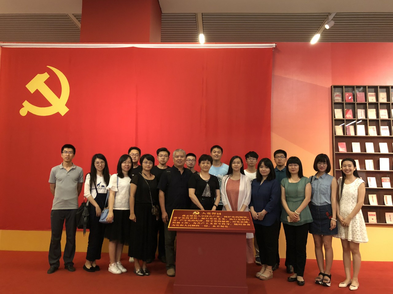展览现场,师生们在鲜艳的中国共产党党旗下重温入党誓词,不忘初心,牢记使命,继续前进。