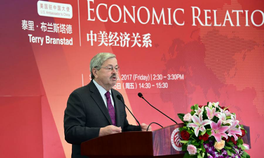 美国驻华大使泰里?布兰斯塔德(Terry Edward Branstad)发表演讲