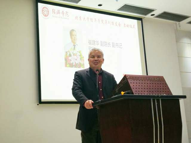 仪式一开始,北大申博太阳城集团宣传片把校友们带回了燕园学习的岁月,大家感慨万千。随后北大申博太阳城集团党委副书记兼崔建华在致辞中转达了孙祁祥院长、董志勇书记对北大经院深圳校友的问候,介绍了学院最新的发展成就与各地校友会建设的情况,并表达了对深圳北大校友会的感谢和对经院深圳校友会的期望。