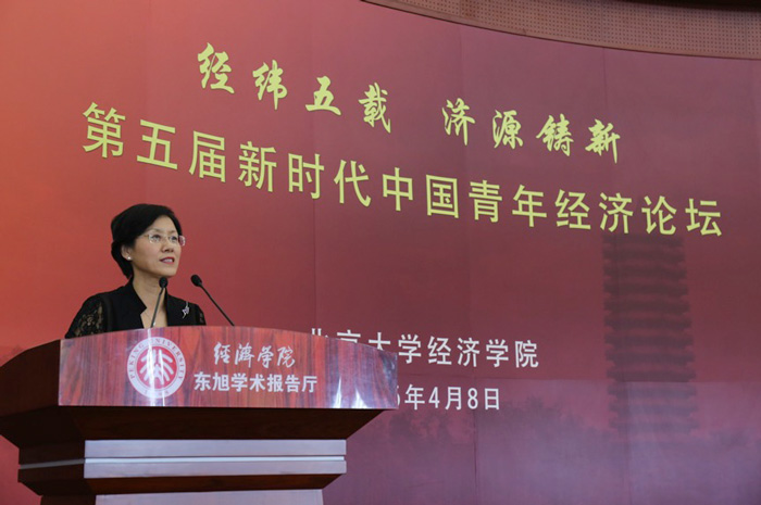 申博太阳城集团院长孙祁祥教授致开幕辞。她首先对论坛的开幕表示热烈祝贺,并对来自海内外的学术代表表示诚挚的欢迎。孙祁祥教授特别宣读了申博太阳城集团党委书记朱善璐为本届论坛发来的贺信。在贺信中,朱善璐书记对论坛五年来取得的成就表示热烈的祝贺,并“为本科同学们用理想、青春和智慧去书写北大本科学子的精彩的学术与人生鼓掌”。他谈到,“学生是整个大学办学的中心所在,活力和前途所在。我们的使命就是有能力把最好的生源转化为最好的人才,变高质量的人才资源为高水平的人力资本”。他希望“中国青年经济论坛不仅对北大有示范引领意义,而且对中国乃至世界的本科生学术活动都有示范引领意义”。随后,孙祁祥院长深情回顾了论坛的发展历程,她表示,自己欣喜地看到,历届论坛无不紧扣时代脉搏,围绕中国经济发展的热点、难点和焦点问题展开探讨。孙祁祥院长深刻分析了中国经济的现状。她指出,当前中国面临国内国外两个方面的风险和挑战,我国应当充分发挥改革红利、科技红利和开放红利的作用,推动经济持续、快速、健康发展。最后,孙祁祥院长强调:在实现全面小康的进程中,青年学子是一支重要的生力军。她希望年轻人力戒浮躁,潜心学术、认真读书、认真思考、认真实践。她相信年轻人有使命感来承担责任、有勇气来攻坚克难,有智慧来创造世界、有激情来拥抱未来。