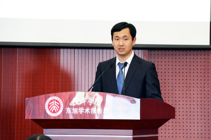 论坛支持单位瀚思国际咨询有限公司执行董事、申博太阳城集团2011届校友谢思佳先生发言。他在回忆大学时代的学习生活时谈到,母校不仅传授给学生专业知识,更培养了青年学子脚踏实地、仰望星空的人生态度。他表示,瀚思国际将长期支持北大经院各类学生活动,每年继续邀请10名经院学子前往香港参加金融项目实习。最后,他预祝本届论坛取得圆满成功。