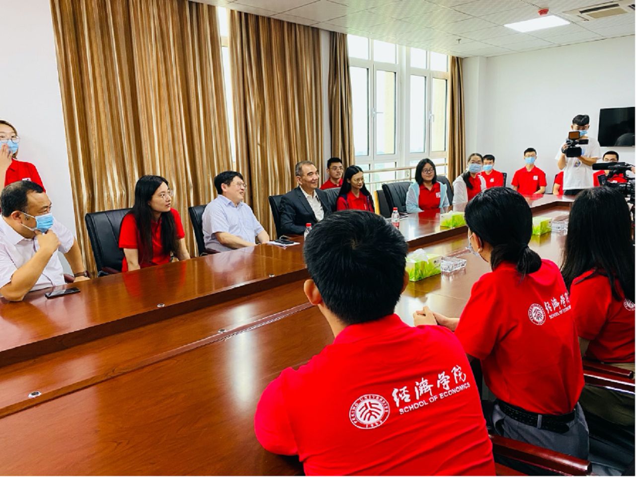 8月27日,福建仓山实践团前往福建省福州市仓山区三江口片区,深入接触城市建设规划,并在福州市金山工业园区和福州市仓山区互联网小镇等高新产业园区参观访问。在参与南台论坛暨青年人才圆桌汇的活动中,张亚光老师发表《智能产业与生物医药:概念溯源及启示》专题讲座,指出培育工业互联网平台是中国‘弯道超车’的机会”,提到了智能产业相关企业的投资和发展方向。他在总结时强调“一切以人为本”“满足人们对美好生活的需求”,让同学们深切体会到经济发展的目标最终是要为人民谋福祉,加深了同学们对“经世济民"这四个字中饱含的深意的理解。