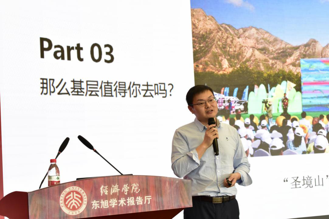 张亚光简要介绍了学院校友工作,特别是选调生工作的开展概况。近年来,越来越多的北大经院人选择扎根基层。从数据背中,学员们看见了散如满天繁星的选调生前辈;从一张张前辈在街道乡间工作的照片中,学员们看到了他们身上迸发出的一缕缕青春之光、奋斗之光。