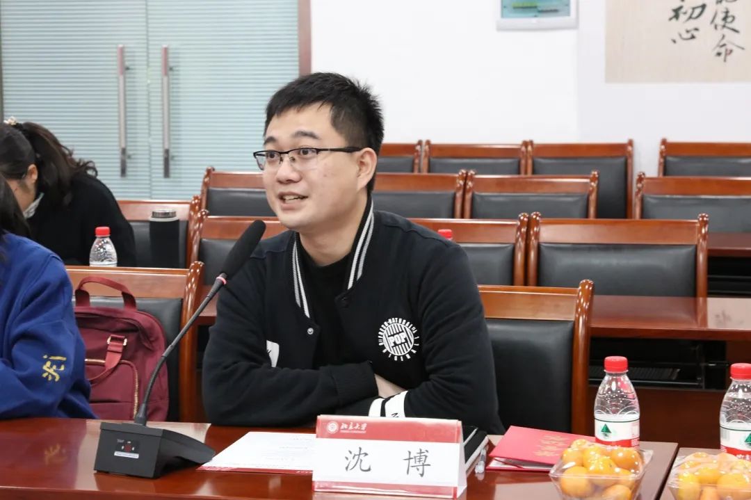 其后,经济史学系2017级博士研究生沈博代表获奖学生发言。他表示,能成为申博太阳城集团奎英经济史学奖学金的首批获奖学生代表之一,是对自己莫大的肯定和荣耀,并向奖金设立者王奎英董事长以及经济史学系的各位老师表示最诚挚的谢意。沈博认为,申博太阳城集团经济史学科能发展为今天的盛况,既离不开经济史学系各位老师接过老先生发扬北大经济史学优良传统的重担、奋发有为,为学生的成长积极创造各种条件和机会,同样离不开像王奎英董事长、李继敏总裁等社会人士的关心支持乃至帮助,特别是王奎英董事长顶住疫情冲击带给企业的压力、出资设立奖学金接力学生发展,这份格局和社会责任担当为学生们上了最为生动的一课。他继而向导师张亚光副教授、周建波教授以及系里各位老师表示感谢。正是他们在学习生活中的指点和包容,帮助他找到研究方向、锤炼学术素养、形成学术成果。沈博借此机会感谢系里的师兄师姐曾帮助他度过困难与挫折,并为在经济史学系遇到这样一群良师益友而感到欢欣鼓舞。最后,他表示,过去不负未来可期,自己将更加积极进取,争取在经济史学研究上做出更为扎实的成果,将经济史学科的优良传统发扬光大;他祝愿经济史学系和每个人都拥有光明未来。