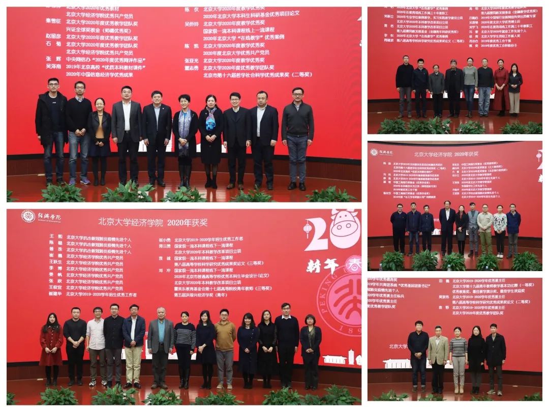 2020年,北大申博太阳城集团教职工个人或集体在北大校内外获得众多荣誉或奖励,主持人一一宣读获奖名单,在热烈的掌声中,获奖者登台并合影留念。