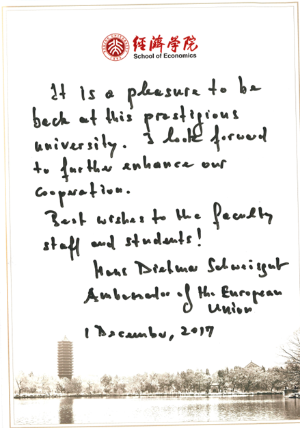 2017年12月20日,时任欧盟驻华大使史伟先生(Hans Dietmar Schweisgut)发表演讲:“中欧经济关系”;