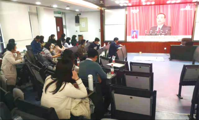 在庄严的国歌声中,十三届全国人大四次会议正式开幕。在场师生认真聆听、学习政府工作报告,并不时记录。在学院师生集体收看的同时,尚未返校学生也在家中自行收看大会视频直播。