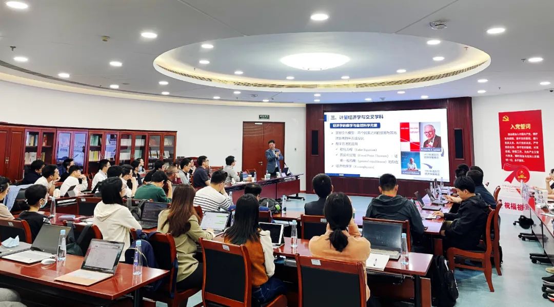 洪永淼教授的主题演讲围绕计量经济学在经济学中的作用和计量经济学本身作为一门交叉学科的前沿动态展开,介绍了经济学的研究范式、计量经济学的核心理论和任务,以及其与自然科学、心理学和人文科学的融合发展。