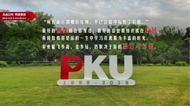 在座的各位同学能够从竞争如此激烈的选拔考试中脱颖而出,这充分证明了你们的才华和能力,也是对你们过去日复一日辛勤耕耘的最好嘉奖。然而,我必须再次泼一泼理性的冷水——这张金灿灿的录取通知书,并不是一劳永逸、遮风挡雨的保护伞,更不是护佑你们前路一马平川、高枕无忧的通行证。在这个相同的起点上,有人无比珍视在园子里的宝贵时光,自我督促、自我鞭策、踏实积累、勤奋用功,不断拓展着青春的深度、厚度和广度;而有人却在虚拟的世界里肆意畅游,玩垮了意志、玩坏了体质、玩毁了青春。“所有命运馈赠的礼物,早已在暗中标好了价格。” 最好的朋友就在你身边,最好的信息和知识就在校园,燕园数载将是你的一生中学习资源最为丰富的时光,未来职业发展的高度,也很大程度受在校期间知识和思想水准厚度的影响,一纸文凭远非人生畅行无阻的通行证,未来能飞多高,走多远,仍取决于你的努力与付出,唯有终生学习、不断超越的人,才有资格说不负韶华、不负人生。