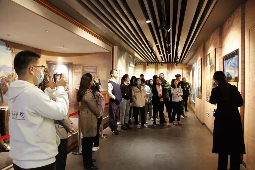 师生一行参观了中国保险博物馆。馆内陈列了中外多个时期的珍贵藏品,从世界保险的起源到国内民族保险业的发轫,再到现代保险业的蓬勃发展。同学们与历史面对面,直观地感受到保险业发展的历史轨迹,及其对现代社会的贡献。此外,博物馆还设立了国内首个“红色保险”专题,以实物资料、雕塑、多媒体场景再现等形式展示了党的“一大”至“七大”期间党对保险业的领导和影响、抗战时期中国保险业第一个党支部的成立、上海和重庆两地保险公司作为地下组织为中国革命做出的重大贡献等珍贵历史主题。同学们在参观中汲取革命前辈的精神力量,增强了使命感与信念感。