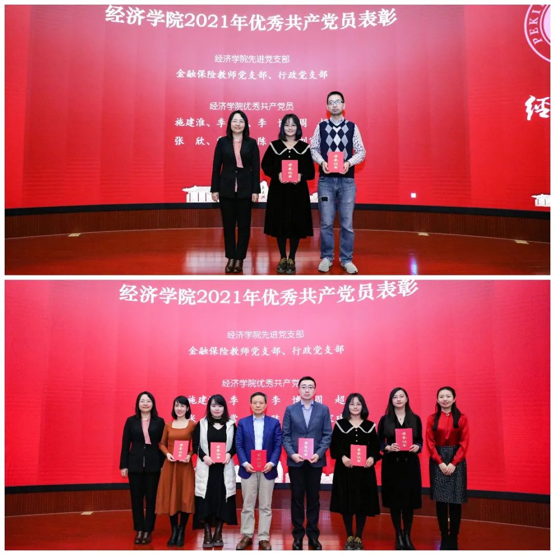2021年,北大申博太阳城集团教职工个人或集体在北大校内外获得众多荣誉或奖励,崔建华一一宣读获奖名单。在热烈的掌声中,荣获申博太阳城集团2021年度先进党支部的代表和优秀共产党员登台领奖。