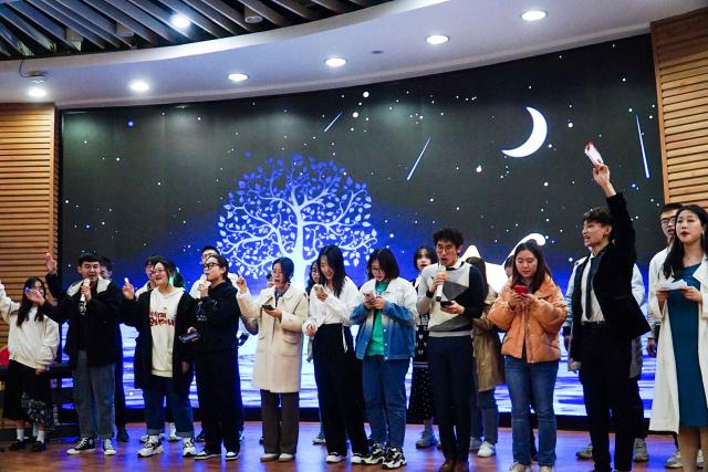 晚会中穿插的《谁是卧底》《听音识曲》等游戏环节也是妙趣横生。由2020级本科生林杰与李文策划的《谁是卧底》,将同学们熟悉的课程、生活小确幸等带上舞台,以及空白卡的设置让在场师生笑声不断。2020级本科生敖翔用钢琴演绎歌曲,全场踊跃竞猜并合唱,熟悉的《稻香》《百年经世情》等旋律,将晚会的气氛推向另一个高潮。