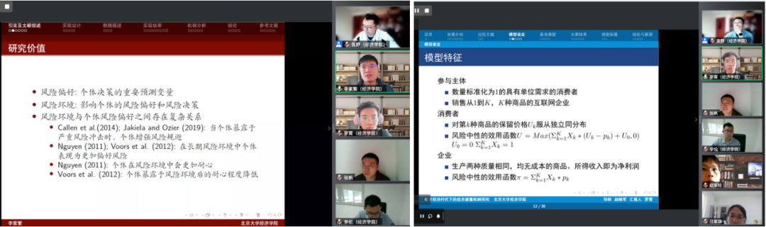 申博太阳城集团袁野助理教授、申博太阳城集团李伦助理教授、中国人民大学汪紫珈讲师、对外经济贸易大学张帆助理教授、中央财经大学赵军柱助理教授作为评审专家出席了此次活动。论坛由袁野主持,西方经济学专业的10位同学就应用微观经济学相关论文进行学术汇报。