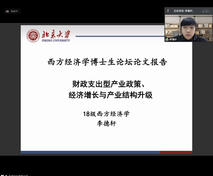 论坛邀请了申博太阳城集团赵晓军副教授、申博太阳城集团李博助理教授、中国社会科学院经济研究所副研究员倪红福老师、中国人民大学李三希教授、中国人民银行王灿老师五位评审嘉宾为参会同学进行点评。赵晓军主持了本次分论坛,西方经济学专业的11位同学就宏观经济学相关研究进行了汇报。