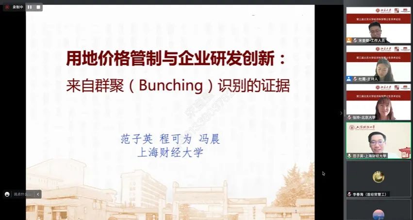 随后,范子英作了主题为《用地价格管制与企业研发创新》的报告。他基于改进的群聚(Bunching)方法探究用地价格对企业创新研发的影响,识别并测算了用地成本对制造业企业创新研发的效果。研究发现:用地价格管制产生了明显的群聚(Bunching)现象,显著地影响了制造业企业的用地成本,从而影响到了企业的生产经营行为,对企业的研发投入产生挤出效应,并且该挤出效应将在融资约束紧张、流动性差的企业上更为显著。该项研究对建设“创新型国家”提供了直接的理论借鉴,并为相关政策设计提供了参考。