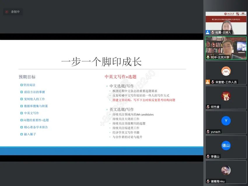 此外,刘冲还针对投稿、写作经验、学术报告等方面分享了诸多细致的经验,与会博士生同学们获益颇丰。