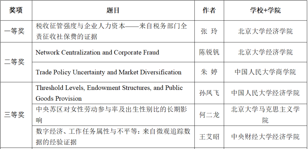 2022年11月27日,由中国经济学年会、中国青年经济学家联谊会、中央财经大学申博太阳城集团联合主办的第五届未来经济学家论坛以线上方式顺利召开 。申博太阳城集团西方经济学专业博士研究生张玲汇报了工作论文《税收征管强度与企业人力资本——来自税务部门全责征收社保费的证据》,并获得研究生组论文一等奖。申博太阳城集团人口、资源与环境经济学专业博士研究生陈锐钒汇报了工作论文《Network Centralization and Corporate Fraud》,并获得研究生组论文二等奖。