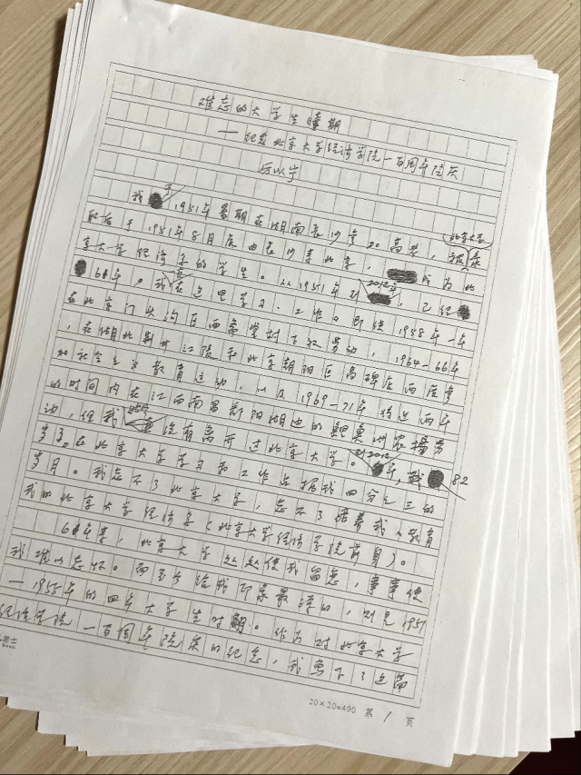 2012年学院百年华诞时,我代表学院邀请厉老师写篇纪念文章。先生写好之后我去家中取。当厉老师拿出那篇他工工整整手写的、题为《难忘的大学生时期》的文章,并跟我分享了其中的一些往事时,我特别感动。至今,我手头还保留着这篇手稿的复印件。