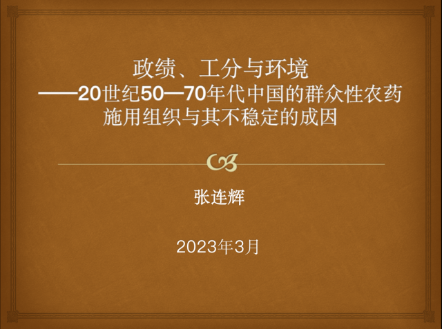 讲座伊始,张连辉教授首先介绍了该研究的写作动机和历史背景。通过对中国20世纪50-70年代历史的梳理发现,由于消灭虫害效率高、成本低,社会对农药的依赖大规模增强。为确保用药安全,各级政府出台一系列安全用药管理政策,一再鼓励乃至要求农村集体经济组织建立人员稳定的专业化施药组织。然而,他在阅读史料中发现,集体经济并未确保施药组织的专业性,群众性的农药施用组织稳定性不足,存在组织有名无实、人员专业化不足甚至没有施药组织的现象。这一问题促使张连辉教授进行了相应的研究。