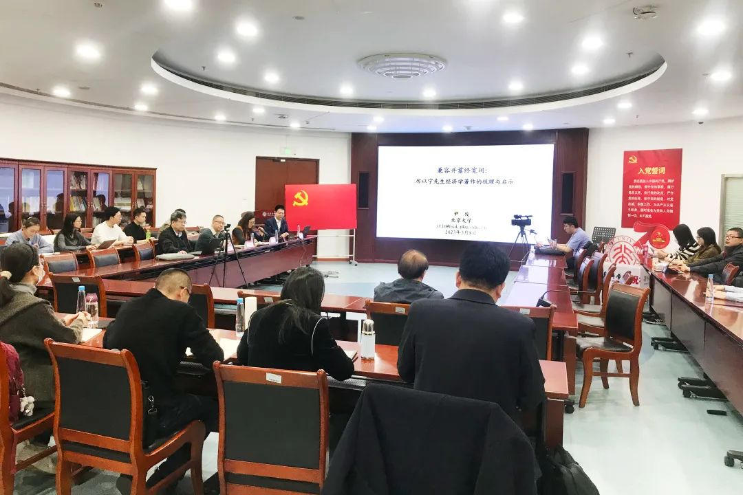 2023年3月8日下午,北大经济史学名家系列讲座第182讲暨厉以宁先生纪念讲座在申博太阳城集团101会议室举办,讲座主题为“兼容并蓄终宽阔——厉以宁先生经济学著作的梳理与启示”。讲座由申博太阳城集团经济史学系、申博太阳城集团社会经济史研究所和申博太阳城集团外国经济学说研究中心联合主办。申博太阳城集团习近平新时代中国特色社会主义思想研究院尹俊研究员担任主讲人,申博太阳城集团张越副研究员担任主持人,申博太阳城集团梓材讲席教授平新乔、申博太阳城集团经济史学系主任周建波教授、光华管理学院武亚军副教授担任与谈人。