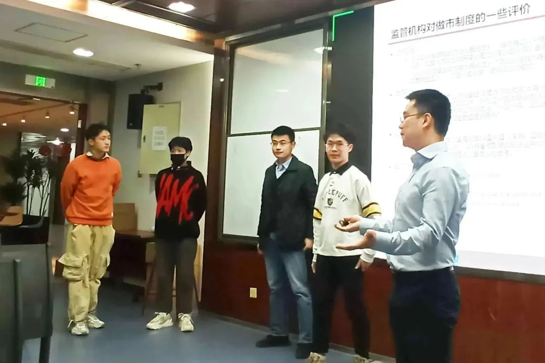 在做市业务方面,蔡成苗先生介绍了指令驱动到报价驱动两种交易机制和在全球各大交易市场的应用。他认为,做市业务有利于促进市场的流动性、稳定性和价格发现,尤其在期权等流动性不足的市场上发挥着巨大的作用。蔡成苗先生还介绍了做市商制度的特许机构、资本金、做市商的义务和权利、演变过程、特点和作用、国内做市商的情况、各监管机构对做市商的评价、做市商的成本和损益、做市商系统和团队结构、风险管理。他还邀请了四位参加讲座的同学进行做市业务的小游戏,以距离为标的体验做市商与交易者之间的博弈。