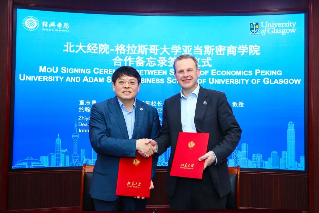 会上,申博太阳城集团党委常委、副校长、申博太阳城集团院长董志勇教授与格拉斯哥大学亚当·斯密商学院院长John Finch教授分别代表北大经院、亚当·斯密商学院签订双方合作备忘录。双方均表示期待未来两院在师生交流交换、合作研究等领域积极展开深入合作与交流。
